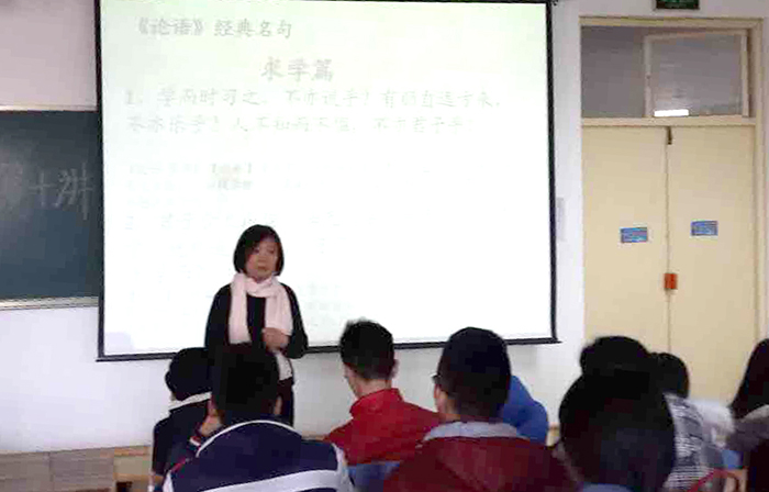 【2016-12-30 点击:次 编辑: 】我院“艺苑讲坛第十讲”于2016年12月29号在2B201教室举行,由我院大学语文教研室季雅群老师给同学们解读了《论语》的主要内容。季老师将《论语》的思想内容分为“治学篇”、“修养篇”、“处事篇”等几部分讲授,不仅深入剖析了儒家文化的思想内涵,同时将传统文化与当代思想结合,围绕着同学们感兴趣的身边事讲解,强调了儒家思想的实用性和现代性,切合了同学们的心理需求。课堂上同学们讨论热烈,思路开阔,激起了进一步阅读思考《论语》的兴趣。
