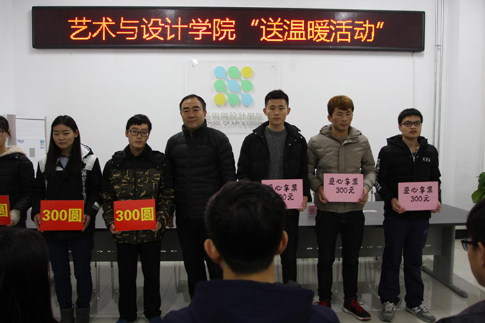 每年的艺术与设计学院“送温暖”活动送去的不仅是物质上的温暖,同时也表现了学院对他们的深切关心和殷切期望。(艺术与设计学院 图/王辉/付维彤 文/孟娜)
