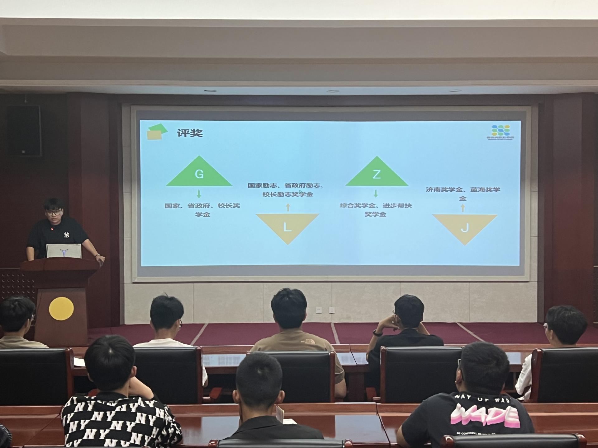 生活部部长王浩向大家介绍了《山东省家庭经济困难学生认定办法》和《山东交通学院家庭经济困难学生认定办法》,从认定范围及比例、申报条件、认定程序以及规则等方面展开具体讲述,让同学们对助学金的申报有了进一步的了解。
