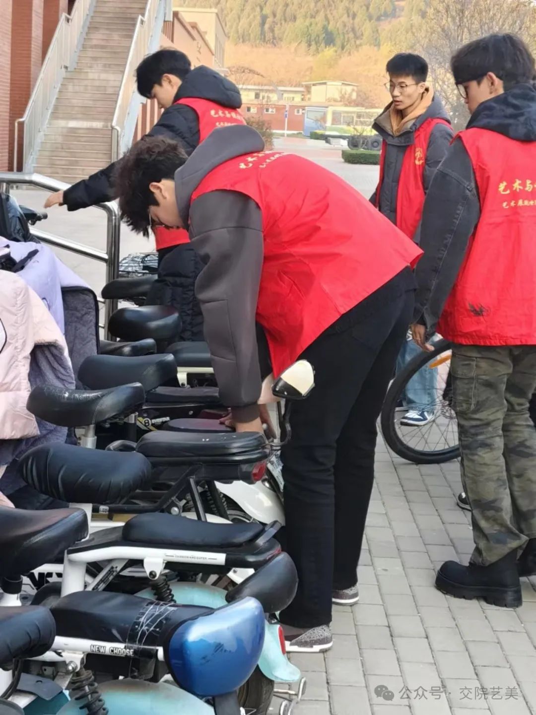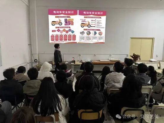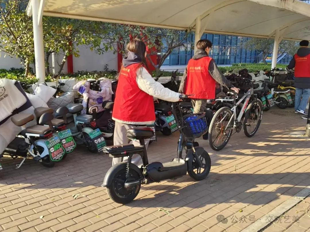 志愿者们将停在停车区域外的车辆搬至指定区域内,采用“张贴便签宣传、指导及引流”的方法,对不当停放的车辆实进行提醒。同时,运用“指导、引流及协助”的策略,劝导不规范停车的学生,防止不规范停车现象的再次发生。在志愿者们共同的努力下,道路两旁停车不规范的情况减少,道路两侧更加整洁。“文明骑行,安全相伴”安全宣讲公益活动,通过具体的安全事例讲解告诫同学们以安全为前提,文明骑车,倡议同学们“以文明之举停车,留顺畅之路予人”。