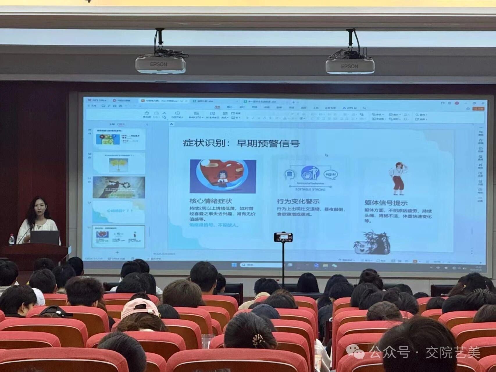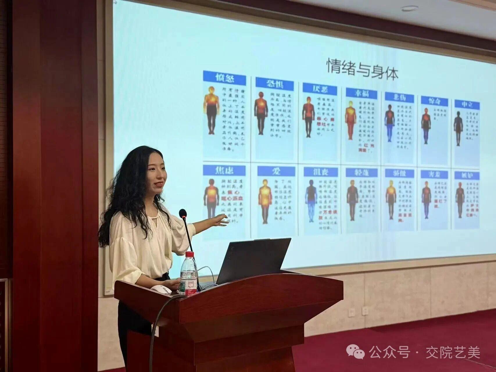 讲座中,郑立群老师以“情绪与身体的关联”为切入点,结合图表与经典案例,解析不同情绪的生理表现,讲解非语言表达中的身体表情密码。她还通过多屏同步展示,从情绪自我察觉调控、心理问题早期预警信号识别等方面,为师生提供心理健康自查与调节指南。