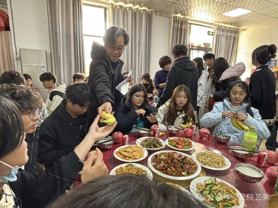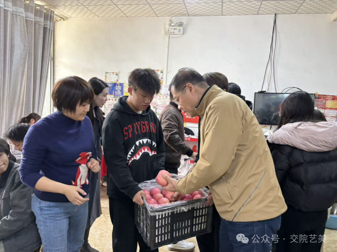 抵达基地后,慰问团首先听取指导老师和辅导员汇报近期写生情况——同学们快速适应环境、积极创作,专业能力在实践中有效提升。接着,慰问团前往基地餐厅,为学生送上苹果、香蕉、牛奶等,关切询问用餐情况,叮嘱注意饮食健康。