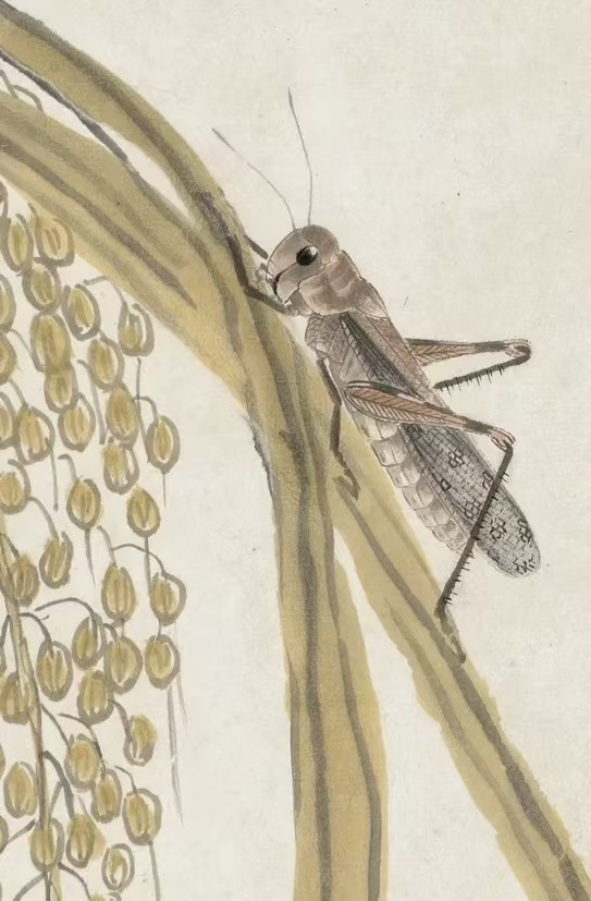 虫与草的搭配使画面疏密有致虚实相生