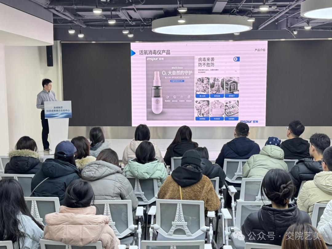 随后的产品介绍环节更是亮点纷呈,浪科智能电器杨尊伟总经理依次讲解了“随心洗”智能产品、宠物智能产品的设计理念与功能架构,还深入剖析了宠物产业大数据体系如何赋能产品设计。前沿的设计案例、详实的数据支撑,让同学们直观感受到产品设计从概念到落地的全过程,也深刻理解了“设计需贴合市场需求与技术逻辑”的核心要义。
