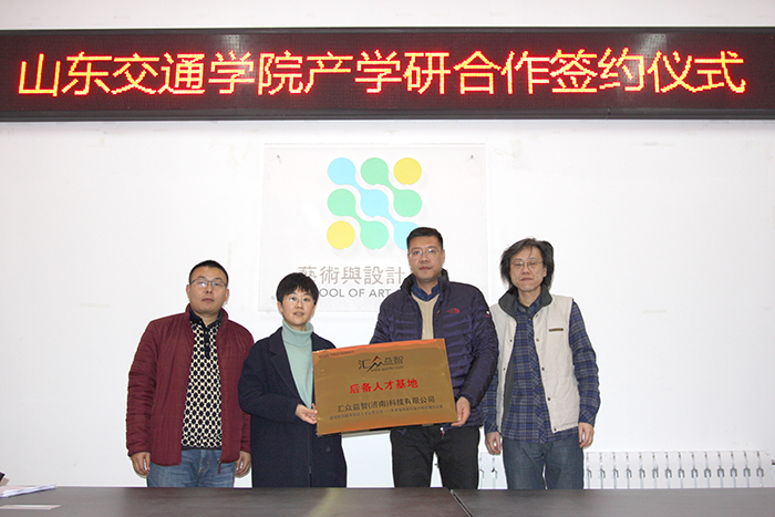 2017年1月11日下午,山东交通学院艺术与设计学院与汇众益智(济南)科技有限公司校企合作签约仪式在山东交通学院长清校区举行,孙龙杰院长、邹立禹副院与汇众益智(济南)科技有限公司郭总经理、校企合作经理范经理参加了签约仪式,双方就人才培养、学生就业方向等方面合作模式进行了探讨,并达成了初步共识。签约后举行了汇众益智后备人才基地挂牌仪式。(图文/刘刚)