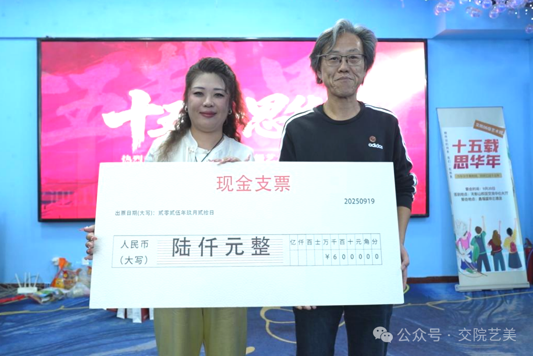校友代表向老师们献上精心准备的鲜花,并向学院“艺美基金”捐赠了六千元,用于资助贫困生的学习。校友和老师们互通近况,十余年的感恩与惦念,言语间满是关切与欣慰,现场氛围温馨动人。