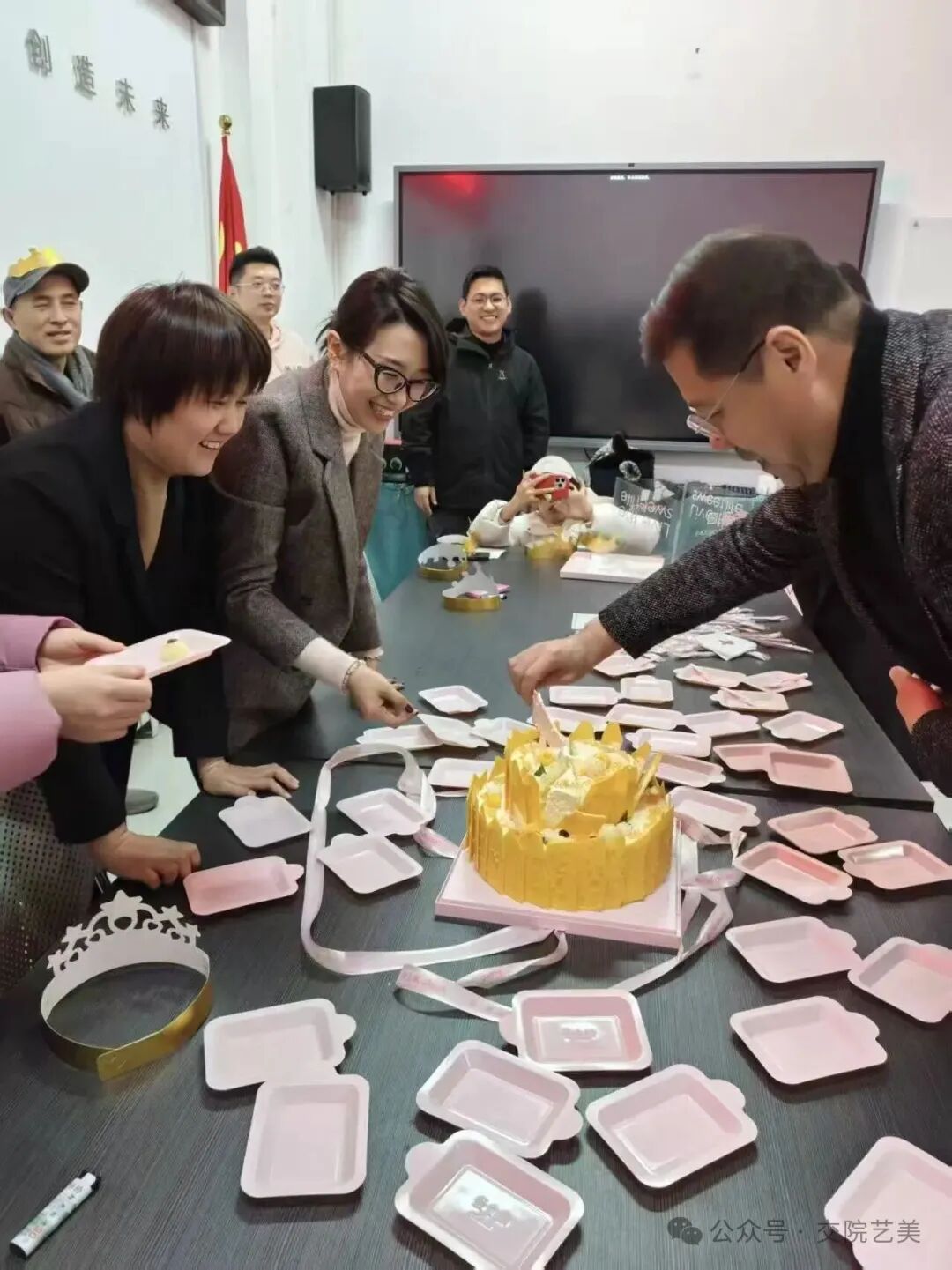 讲座后,温馨的生日会接续开启。生日歌响起,烛光摇曳的定制蛋糕登场,瞬间点燃欢乐氛围。学院领导为寿星们切分蛋糕,祝福与欢笑交织,让会议室满溢家的温暖,老师们纷纷定格这一温馨瞬间。
